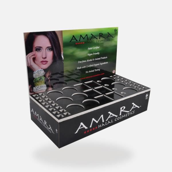 This cosmetic counter display is mainly used for cosmetics, like mascara, powder, lip glossy, eye liner and so on.