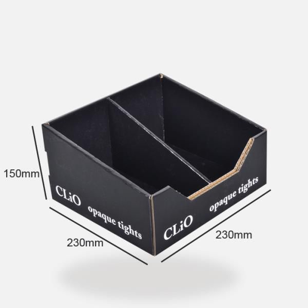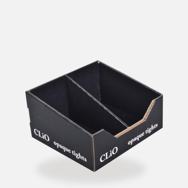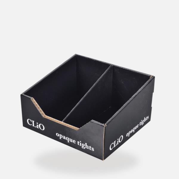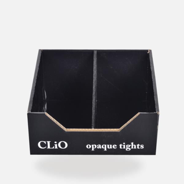 With dividers into the boxes, there will be 2 trays for men and women clothing displayed in a same counter display units.