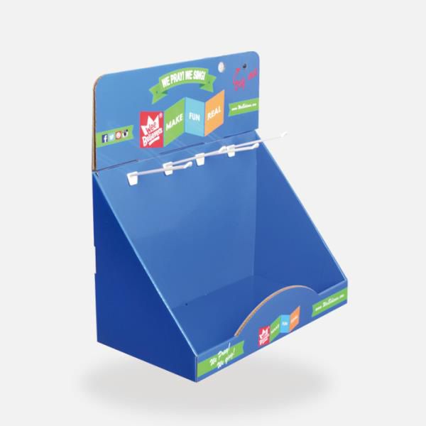 With hangers onto the display, it can not only load and display products into the retail counter displays but also hang some items there, pretty useful for toys’ displaying.